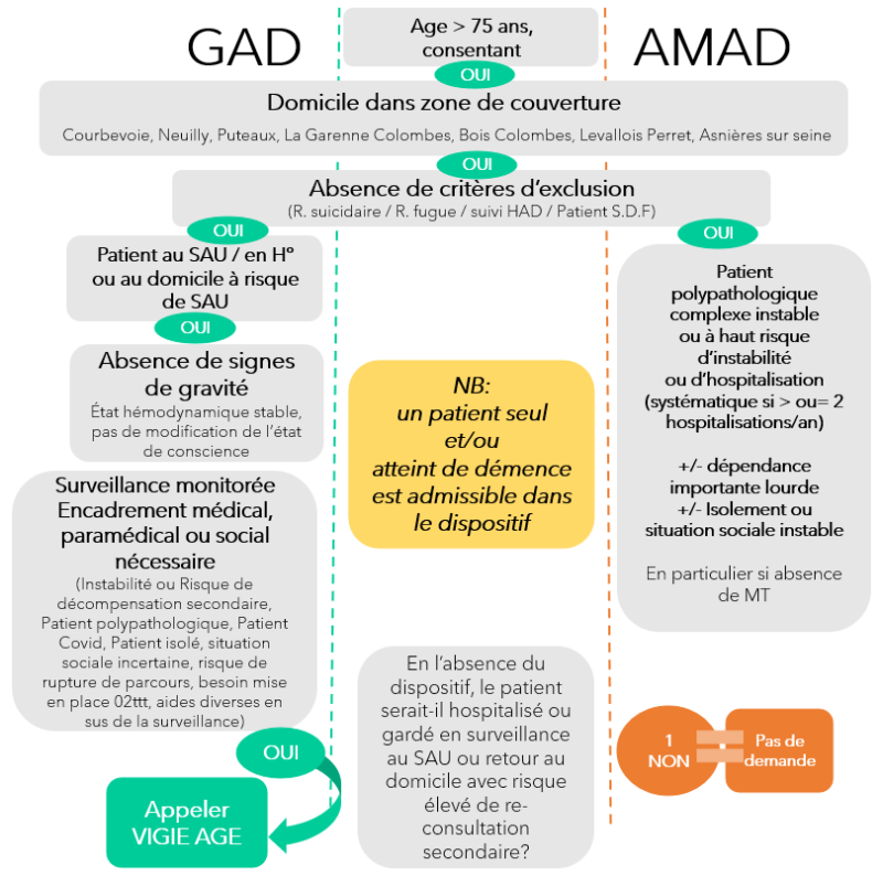 "html_content": "<p><img alt=\"\" height=\"199\" src=\"https://dsih.fr/upld/articles/2022/01/l200_vigie-age.png\" style=\"float: left; margin: 0px 10px 0px 0px;\" width=\"200\"/>Soutenu par l’ARS, Vigie-Âge est un pilote expérimental de services connectés et de soins à domicile destiné à proposer une alternative à l’hôpital. Il permet la télésurveillance des personnes âgées en situation de maladie aiguë ou chronique pour sécuriser leur maintien domicile avec un dispositif qui associe monitoring, visites, mise en place d’aides, coordination pour les examens complémentaires de ville, HDJ, en lien avec les Centres locaux d’information et de coordination (Clic) et les Dispositifs d’appui à la coordination (DAC). Vigie-Âge est porté par le centre hospitalier des Rives de Seine (Courbevoie, Neuilly-sur-Seine, Puteaux). Son expérimentation est prévue pour une durée de trois ans.</p>\n<p>Le dispositif propose deux parcours. Le premier, GAD, pour Gériatrie aiguë à domicile, est destiné à prendre en charge les patients dans une situation aiguë pour éviter une hospitalisation ou raccourcir la durée de celle-ci en permettant un retour sécurisé au domicile dès les urgences ou après une hospitalisation courte. Le second, Amad, pour Accompagnement médicalisé à domicile, prend en charge les patients en situation de polypathologie chronique à haut risque d’instabilité, de dépendance ou d’hospitalisations répétées. Il a pour objectif de sécuriser le patient par le dépistage précoce d’une nouvelle décompensation via la télésurveillance et d’agir dans le meilleur délai afin d’éviter un passage aux urgences, voire une hospitalisation.</p>\n<p>Ces parcours sont personnalisés et connectés 7 jours sur 7, 24h/24, sans reste à charge pour les patients. Vigie-Âge est basé sur une plateforme de télésurveillance CE (DM de classe I) dans le respect de la norme ISO 13485. Il se déploie en moins de quatre heures et assure une intervention immédiate en cas d’urgence.</p>",